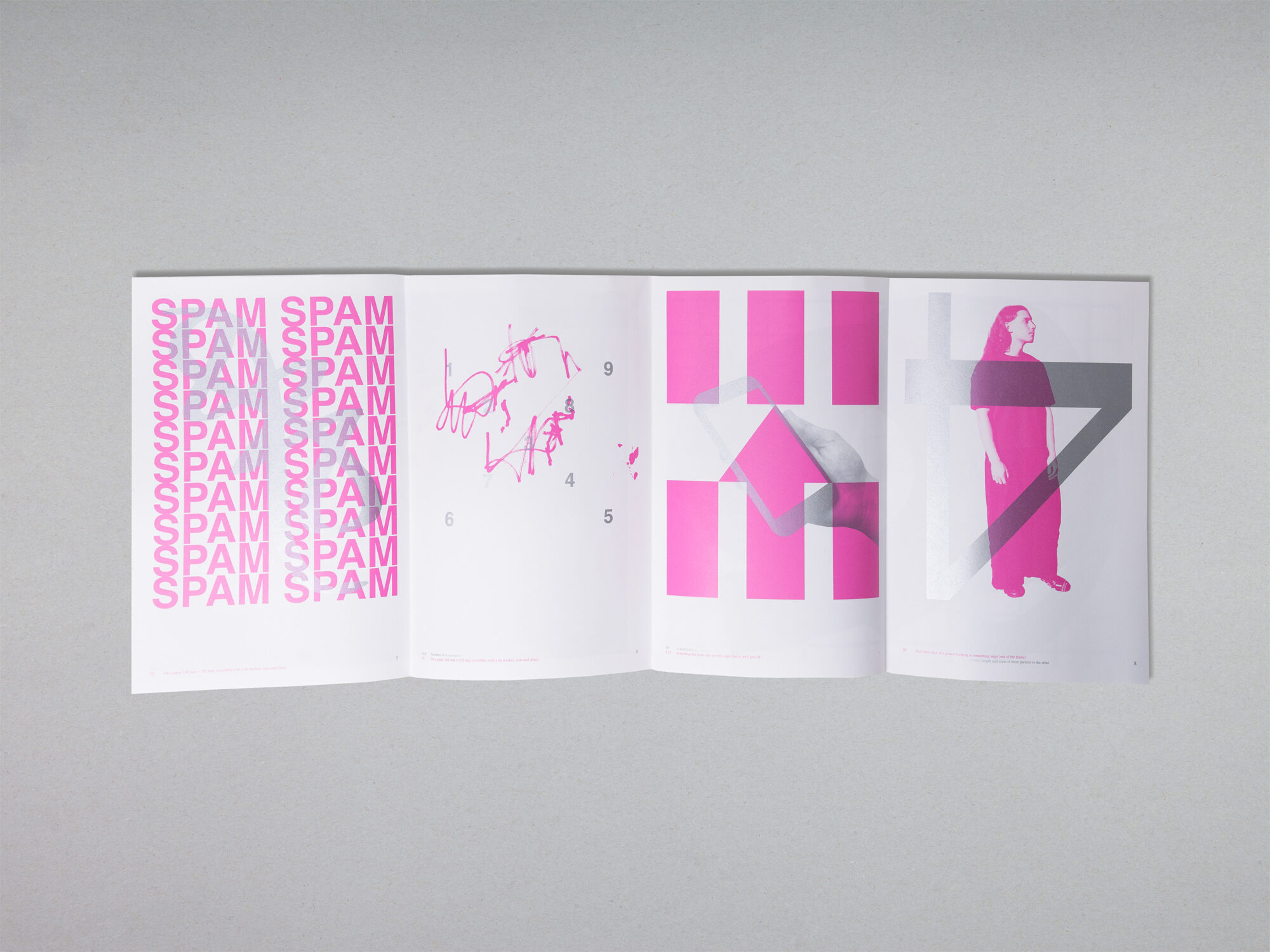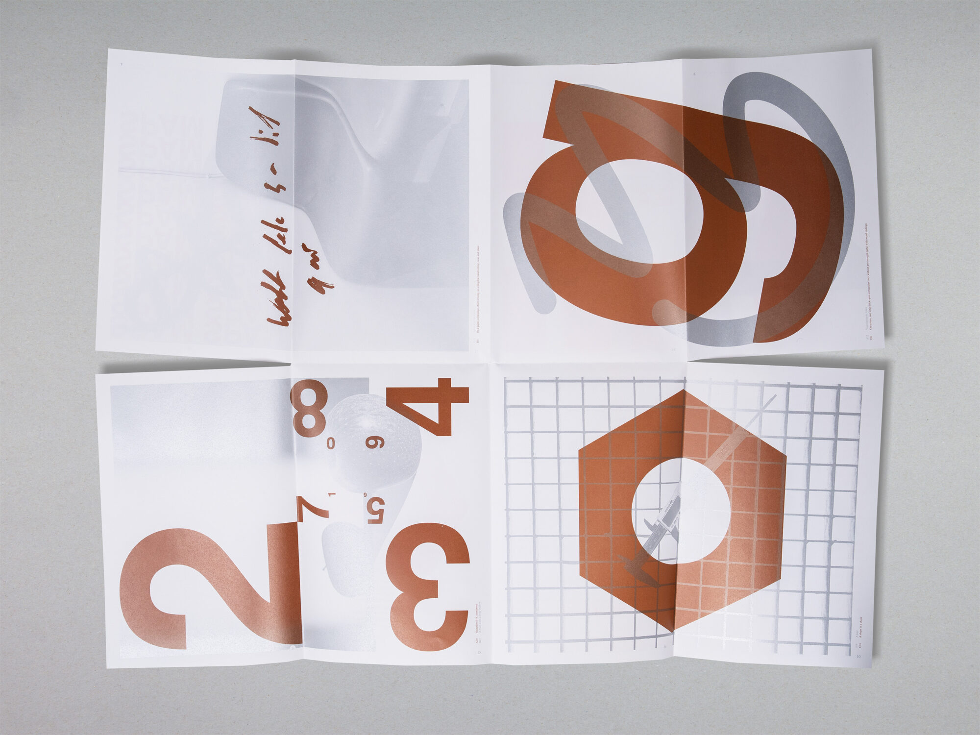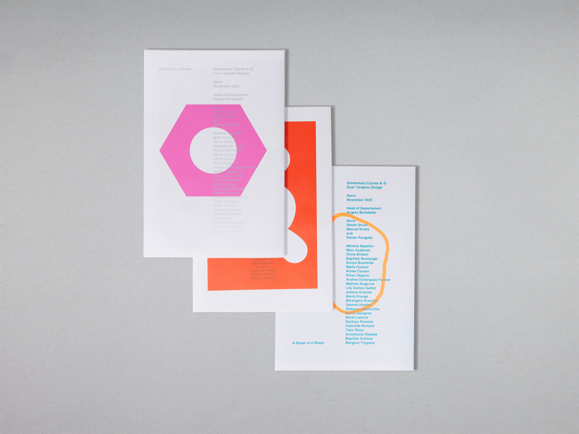 Chaque jour, les étudiants se voyaient attribuer une thématique globale (A – Mots, B – Images, C – Graphiques, D – Dessins), accompagnée de plusieurs questions simples. En combinant ces données, ils ont réalisé trois affiches recto verso collaboratives, destinées à être imprimées en offset pour les Portes Ouvertes de l’ECAL. Chaque affiche possède sa propre combinaison bichromique et se transforme en livret grâce à un pliage.