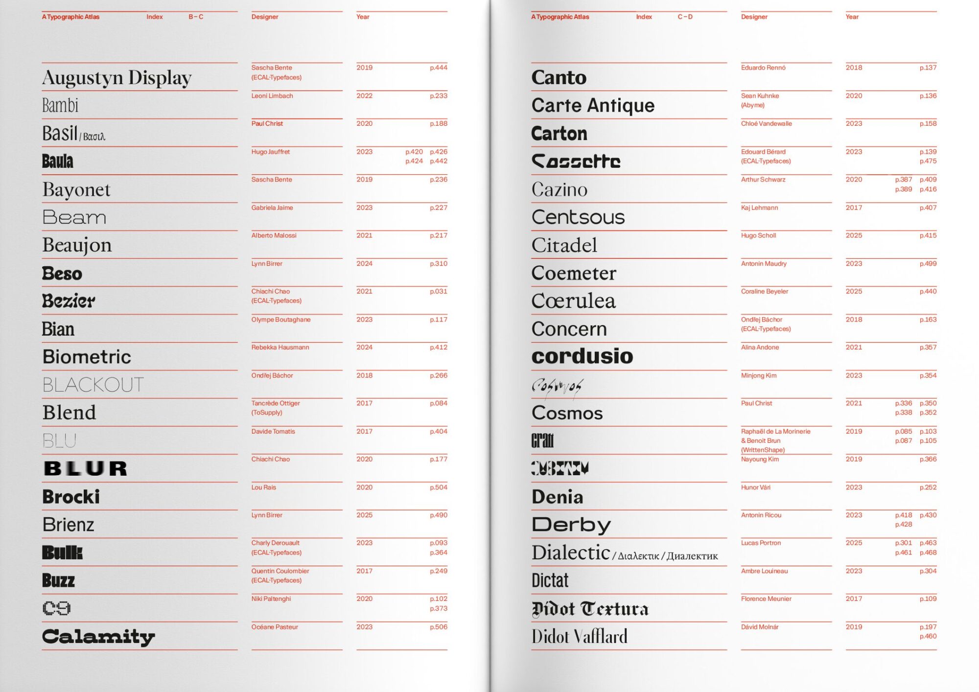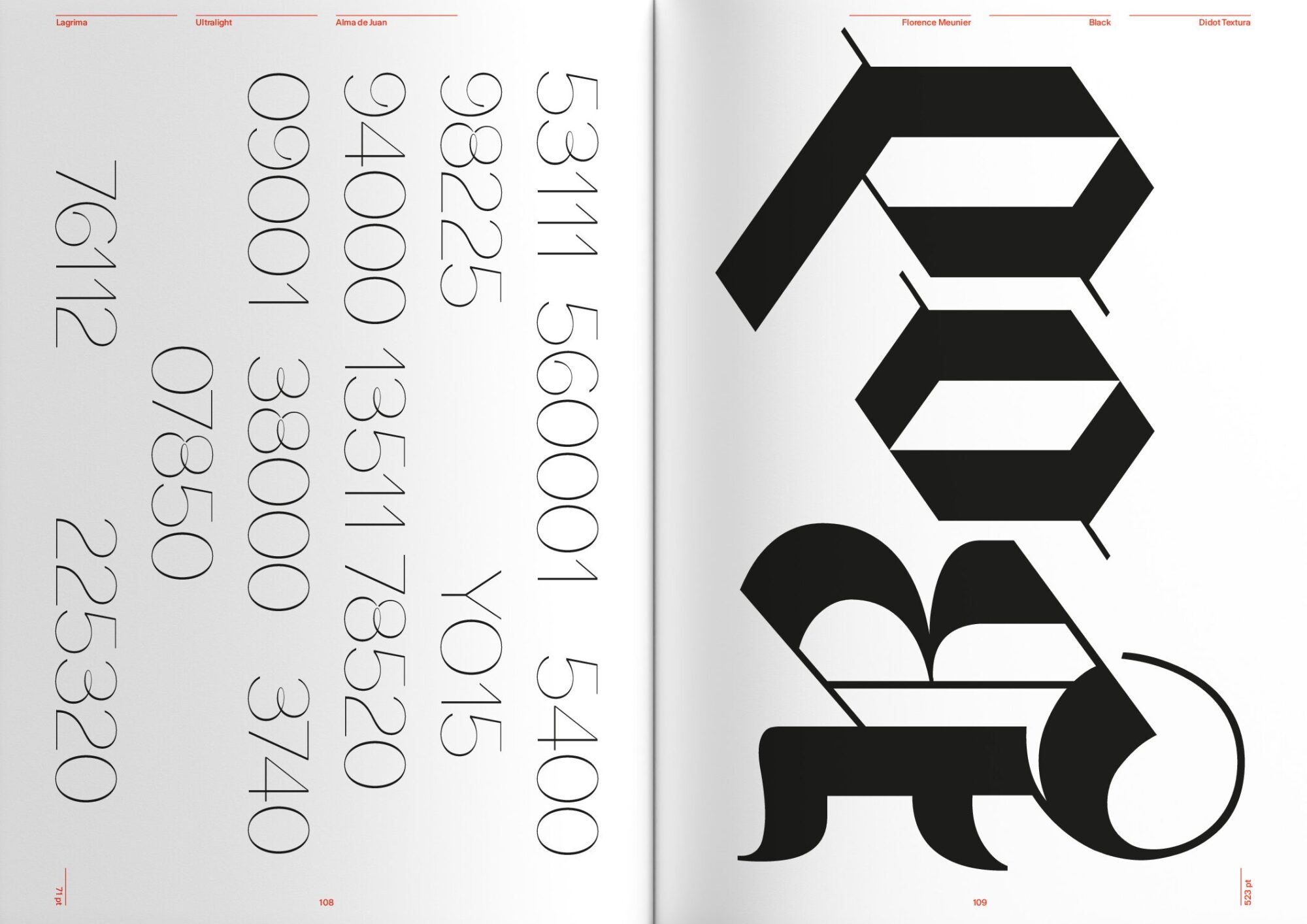 création typographique à l’ECAL/Ecole Cantonale d’Art de Lausanne, en Suisse. À travers deux programmes – son Bachelor en Design Graphique et son Master en Création de Caractères –, l’ECAL a formé plus de quatre cents étudiants diplômés au dessin, à l’espacement, au codage et à la maîtrise des formes de lettres. Il en résulte un vaste panorama : des textes classiques et faciles à lire, destinés aux petits caractères courants, aux formes d’affichage les plus audacieuses ; des formes expérimentales, à peine lisibles, aux modèles classiques revisités